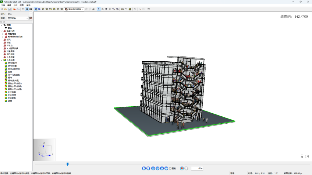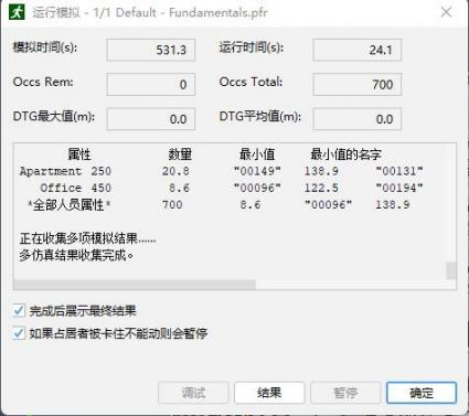 2.在结果窗口中点击播放。模拟将持续到所有乘员退出模型,表现应与 3D 结果图类似。(