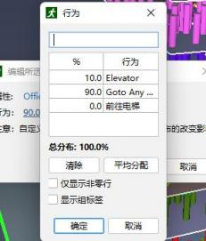 7.在“行为”对话框中,在“电梯行为”旁边输入,“进入任意出口”行为旁边输入 10:90