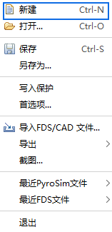 当 PyroSim 启动时,它从一个空模型开始。可以通过打开“文件”菜单并单击“新建”来关闭当前模型并创建新的空模型。 PyroSim 始终有一个(且只有一个)活动模型。