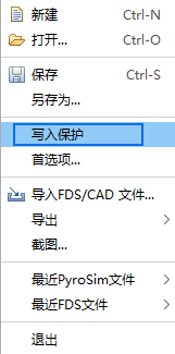PyroSim 支持模型的写保护。启用写保护后,用户无法修改模型(例如更改几何形状、编辑表面属性等)。可以在有或没有密码保护的情况下启用此选项。如果模型被写保护,PyroSim 将在应用程序标题栏中显示通知。